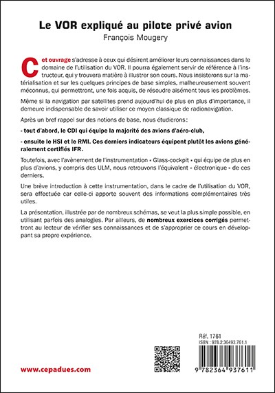 This book is aimed at those wishing to improve their knowledge of VOR use. It can also serve as a reference for instructors, who will find material to illustrate their courses. The emphasis is on materialization and on a few simple, but often overlooked, basic principles which, once acquired, will make it easy to solve any problem.