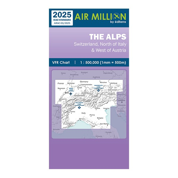 Cartes et Atlas Aero - Carte VFR AIRMILLION Les Alpes Suisse Nord de l'Italie et Ouest de l'Autriche - Édition 2025