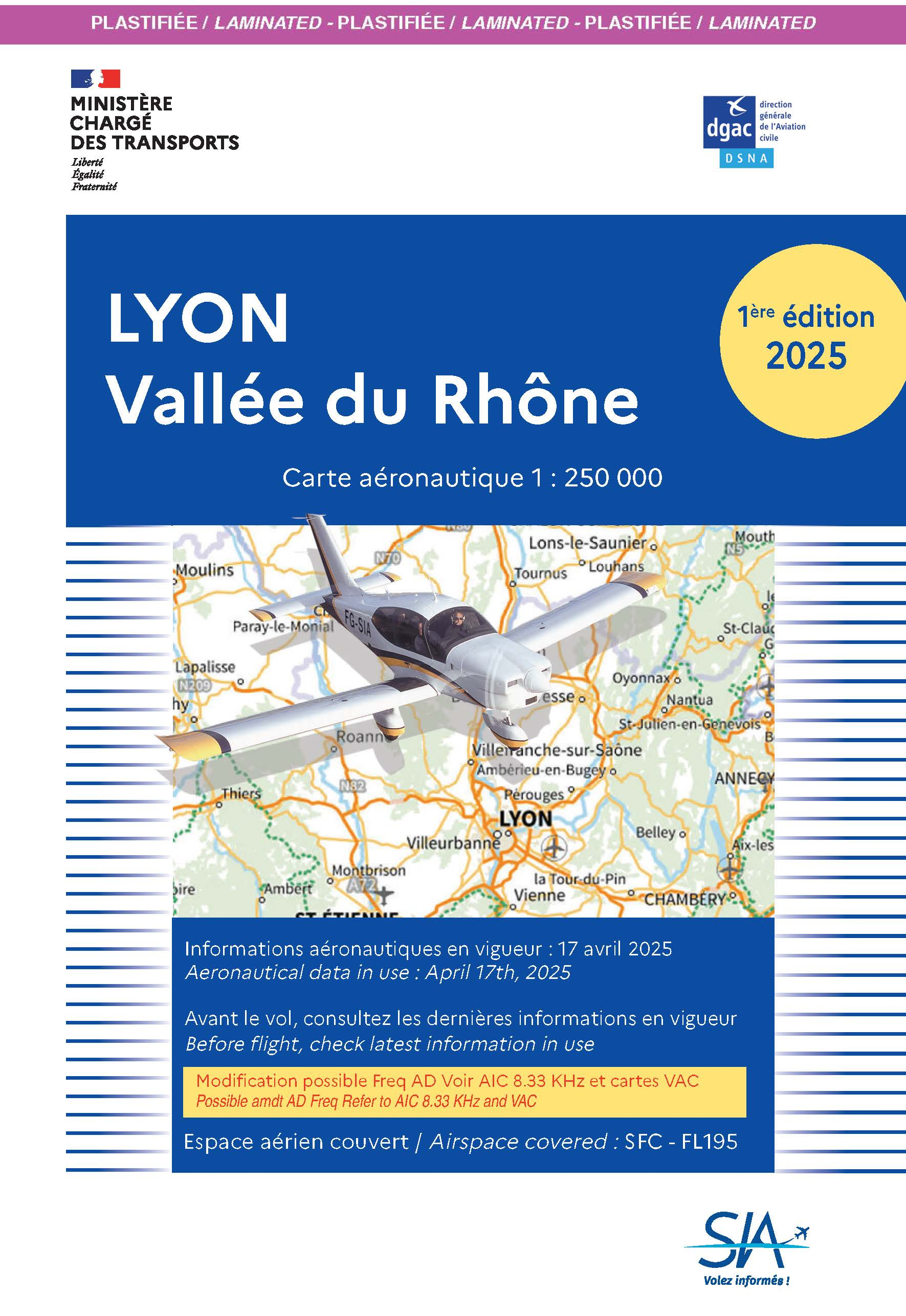 Cartes et Atlas Aéro - Carte VFR SIA Lyon Vallée du Rhône au format 1:250000 - Édition 2025