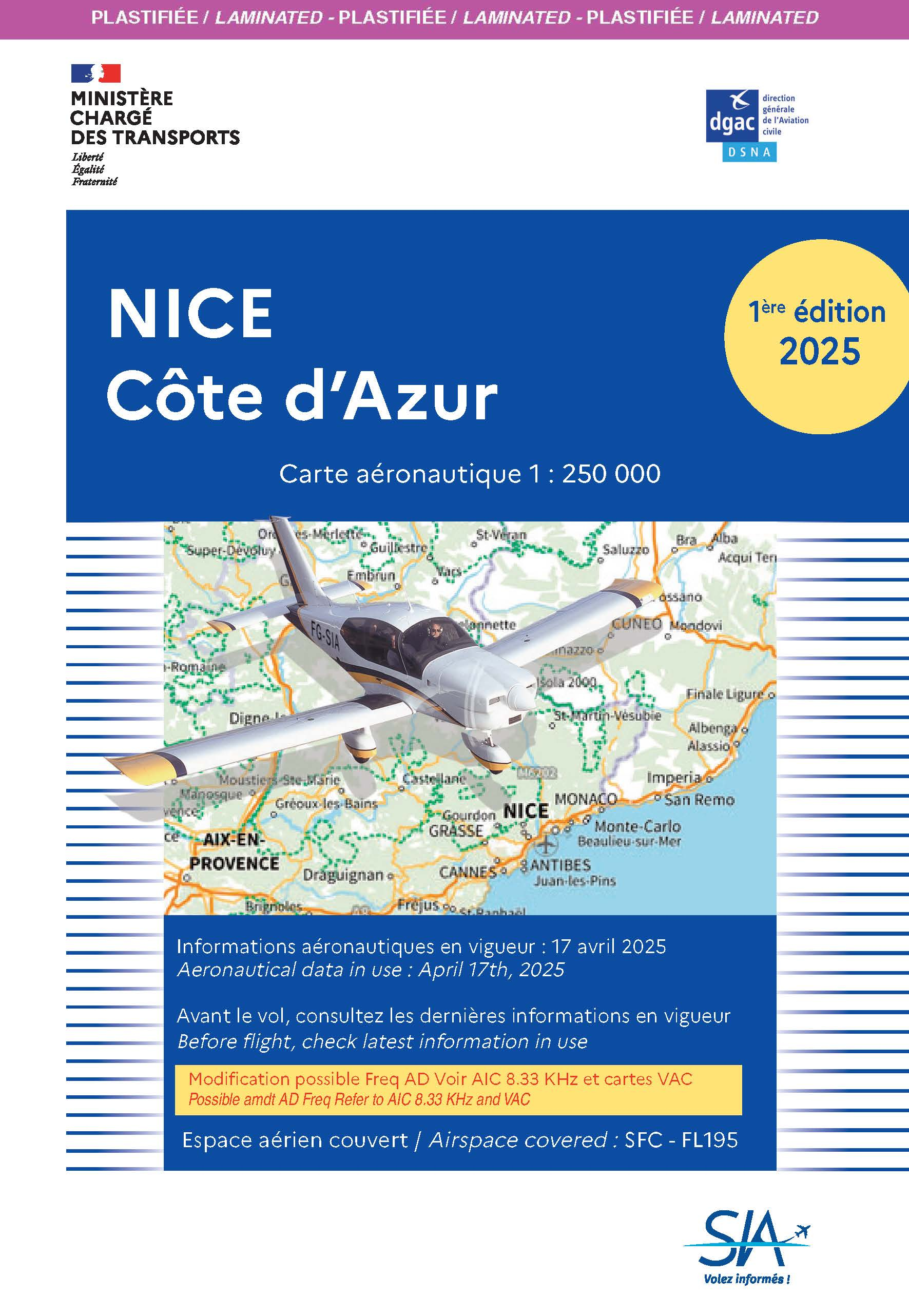 Cartes et Atlas Aéro - Carte VFR SIA Nice Côte d'Azur au format 1:250000 - Édition 2025