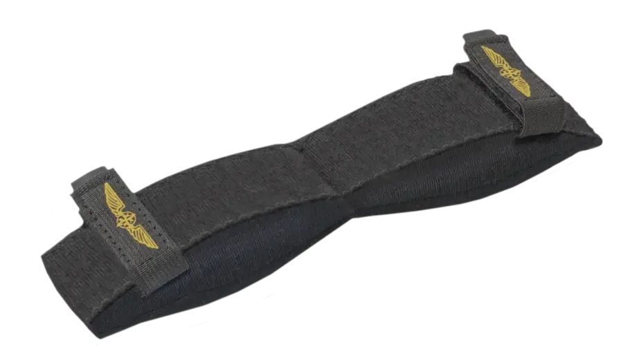 Le PILOT HEADSET PAD se compose de mousse à mémoire de forme recouverte de laine mérinos naturelle douce et respirante avec des bandes élastiques pour la fixation.