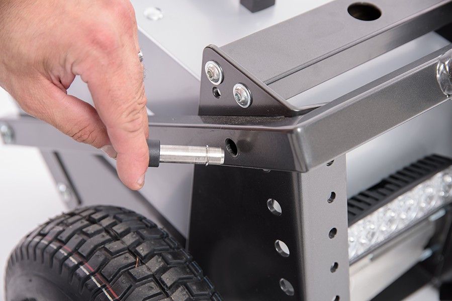 Options supplémentaires : Roues tout-terrain, bouclier anti-neige, diverses adaptateurs de roues avant, manche ergonomique, câble d'alimentation de terre, batterie supplémentaire, attelage à boule