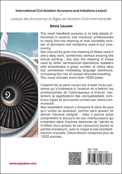Non seulement chacun y trouvera le sens de ceux qu’il utilise au quotidien, parfois sans pouvoir en donner l’énoncé intégral, mais il pourra aussi comprendre le discours de ses interlocuteurs qui travaillent dans d’autres domaines de l’aérien et truffent leurs propos de ces raccourcis faciles et parfois trompeurs, avec le risque d’une incompréhension mutuelle.Cette édition comprend plus de 1 000 entrées.