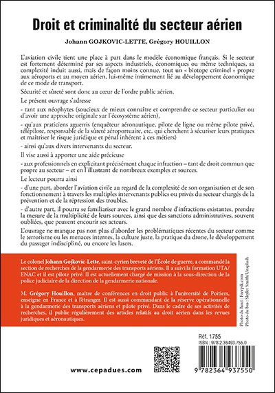 - qu’aux praticiens aguerris (enquêteur aéronautique, pilote de ligne ou même pilote privé, télépilote, responsable de la sûreté aéroportuaire, etc. qui cherchent à sécuriser leurs pratiques et maîtriser le risque juridique et pénal inhérent à ces métiers)