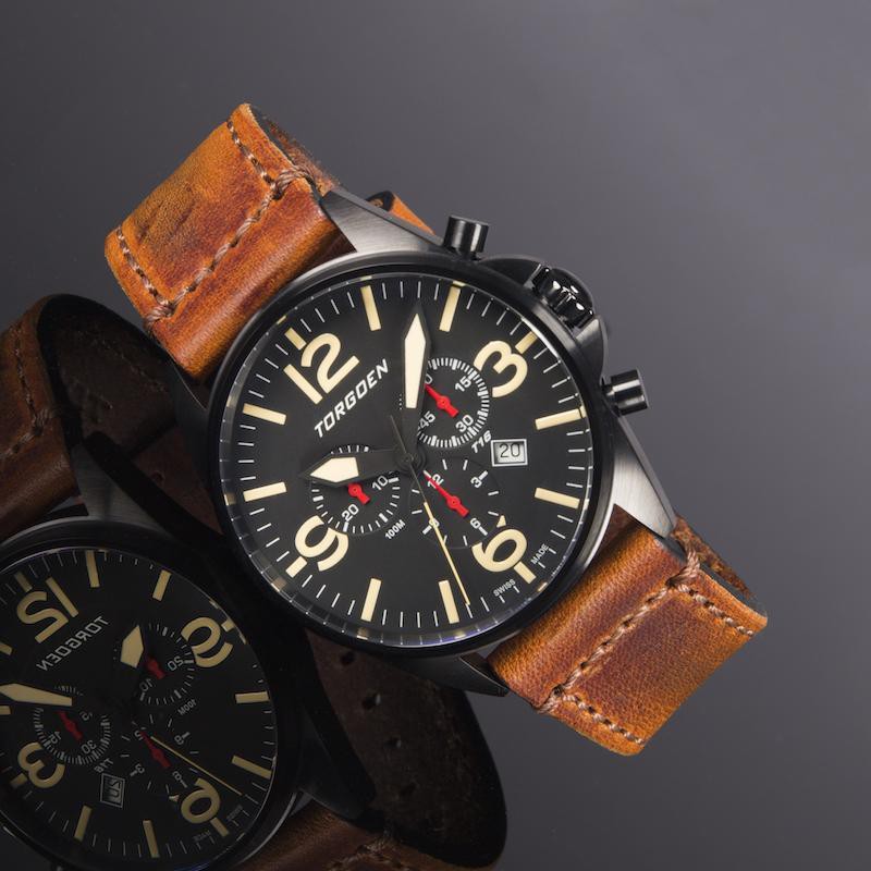 Fidèle à toutes les montres de marque Torgoen, la T16 est dotée d'un cadran au look soigné et est conçue pour être facile à lire, avec de grands chiffres phosphorescents et des repères clairement visibles même dans l'obscurité. Le mouvement du cadrant sophistiqué est fabriqué par ETA, un fabricant suisse de mouvements reconnu. Elle peut mesurer le temps entre deux événements avec une résolution de 1/10 de seconde et jusqu'à 30 minutes. La T16 est encastrée dans un boîtier en acier inoxydable de haute qualité (316L) et protégée par un cristal minéral (K1) résistant aux rayures. Une double couronne en «O» confère à la T16 une étanchéité : jusqu'à 100 mètres sous l'eau. Une fine courroie cousue en cuir italien avec une boucle robuste en acier inoxydable offre non seulement un look élégant, mais aussi un grand confort et une durabilité.