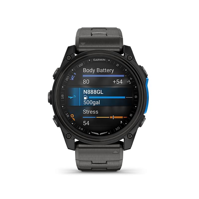 En dehors du cockpit, la D2™ Mach 2 devient un véritable partenaire de performance et de santé. Elle suit la fréquence cardiaque, la saturation en oxygène (SpO₂), la respiration, le stress, le sommeil et l’énergie corporelle (Body Battery™), tout en offrant la fonction ECG pour vérifier la régularité du rythme cardiaque. Grâce aux programmes Garmin Coach, vous bénéficiez des plans d’entraînement et des suggestions quotidiennes, elle accompagne ainsi le pilote dans toutes ses activités sportives, complétant ses fonctions de suivi de bien-être et de gestion du décalage horaire pour optimiser récupération et vigilance.